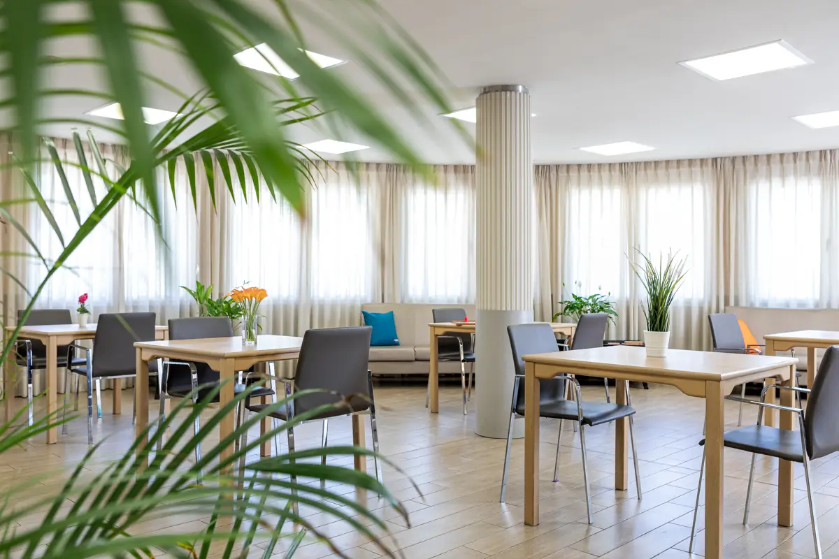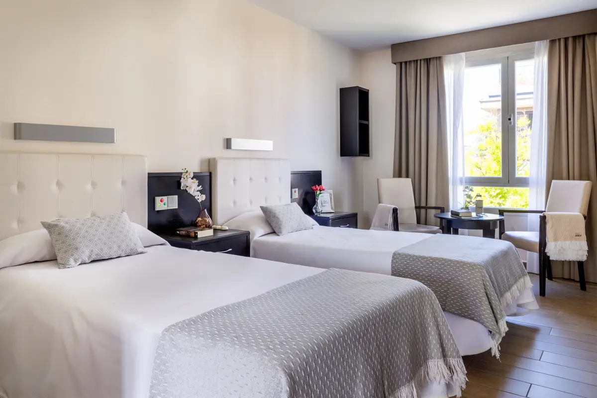 Las instalaciones están diseñadas pensando en el confort y la calidad de vida de las personas mayores. El edificio cuenta con varias plantas distribuidas en diferentes ambientes asistenciales, jardines y zonas exteriores donde los residentes pueden pasear y disfrutar del aire libre. Dispone de habitaciones individuales y dobles, la mayoría con baño propio, así como salones sociales, salas de estar, comedores y espacios para actividades recreativas y de ocio. La combinación de zonas privadas y comunes favorece tanto la intimidad como la sociabilidad, permitiendo que los residentes se sientan cómodos y acompañados.