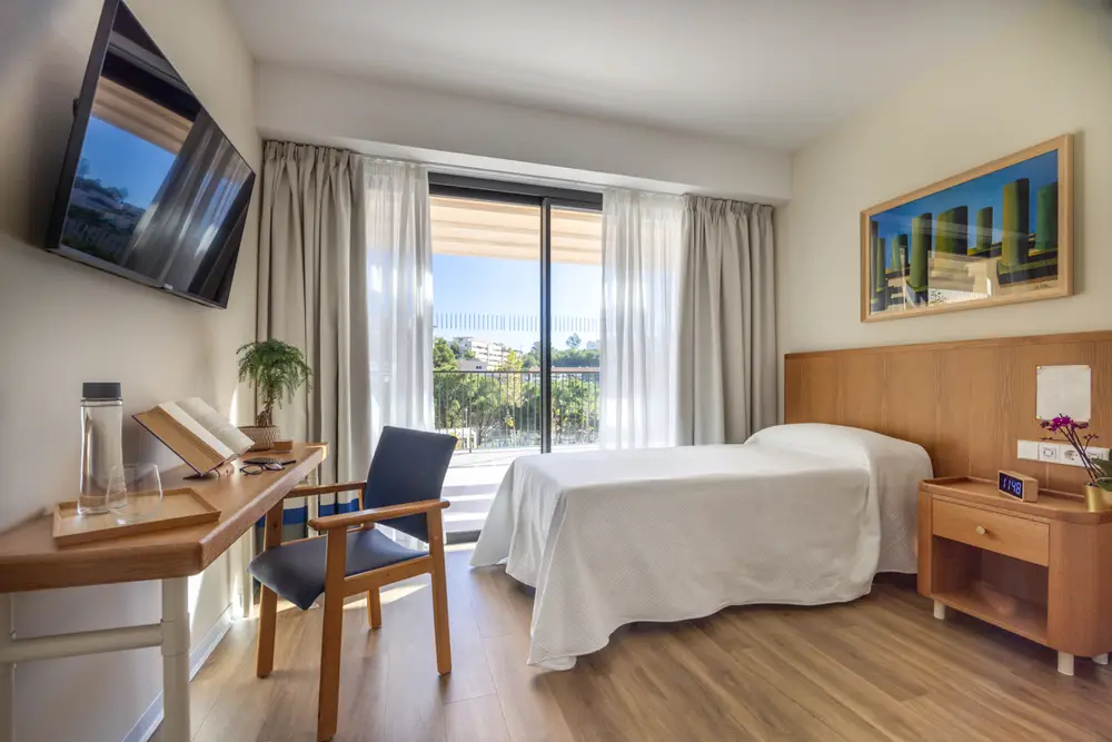 El centro dispone de habitaciones dobles e individuales, y todos los dormitorios cuentan con Smart TV y wifi.