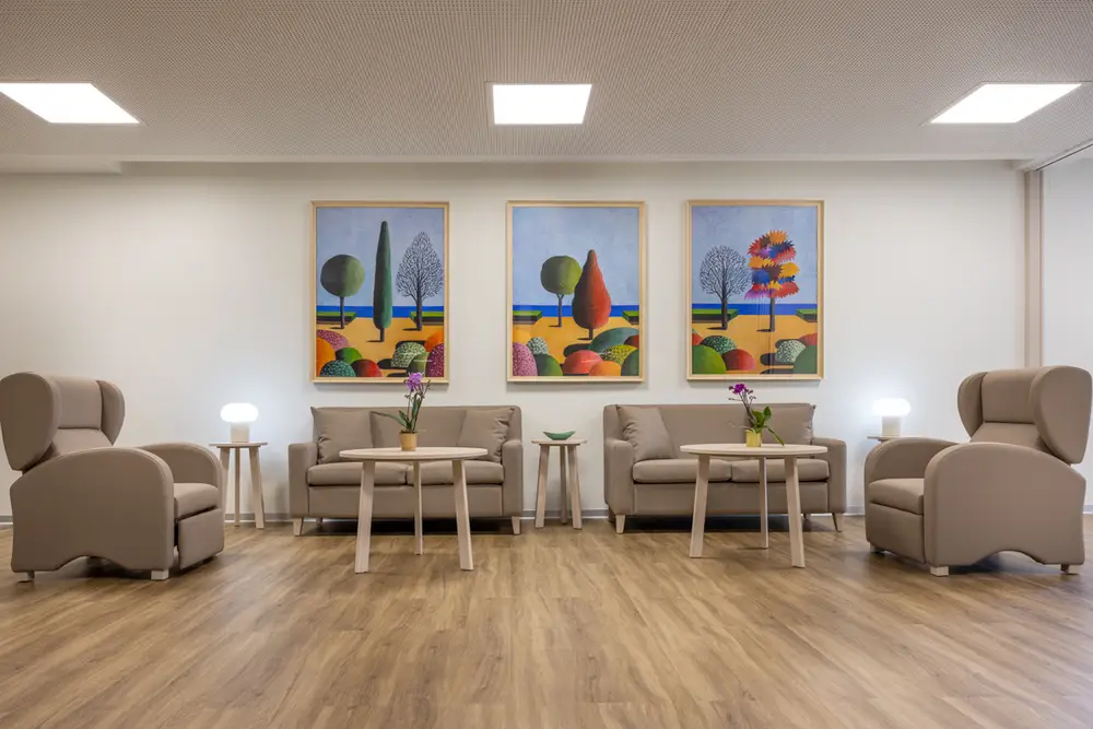 Además de diversos comedores y zonas de relax, contamos con salones, gimnasio, sala de terapia, zona de asistencia médica y enfermería, peluquería, podología y capilla, así como parking privado para visitas.