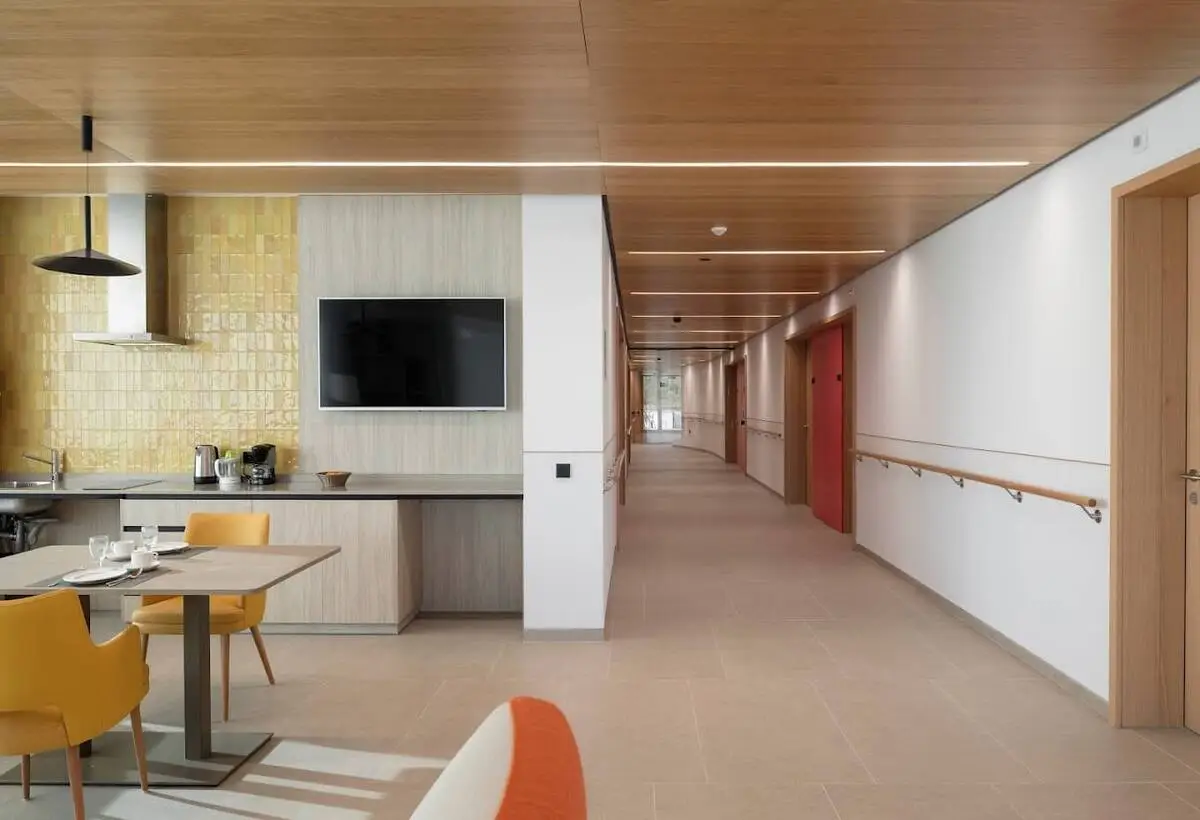 El complejo cuenta además con zonas comunes amplias y cuidadosamente diseñadas, pensadas para favorecer la convivencia, la socialización y el envejecimiento activo. Salas de estar, espacios para actividades, áreas de descanso y jardines exteriores crean un entorno agradable en el que relacionarse, participar en propuestas culturales o simplemente disfrutar de un paseo o de un momento de tranquilidad al aire libre. Estos espacios contribuyen a mantener una vida social rica y a combatir el aislamiento, siempre respetando la intimidad de cada persona.