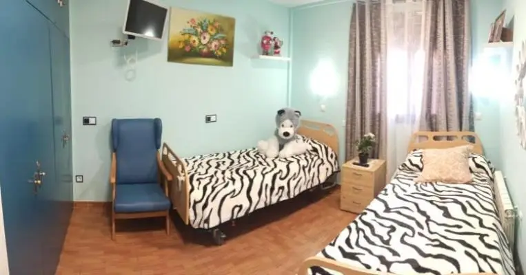 En el interior, la disposición de las estancias busca generar un ambiente de hogar. Las habitaciones pueden ser individuales, dobles o incluso más amplias para quienes lo necesiten, todas ellas organizadas para ofrecer comodidad, luminosidad y privacidad. En función del estado de cada residente, es posible equiparlas con camas articuladas, ayudas técnicas y mobiliario adaptado. Las zonas comunes —salones amplios, salas de estar, comedor y espacios polivalentes— están diseñadas para facilitar la socialización, el descanso y la participación en actividades terapéuticas y recreativas.