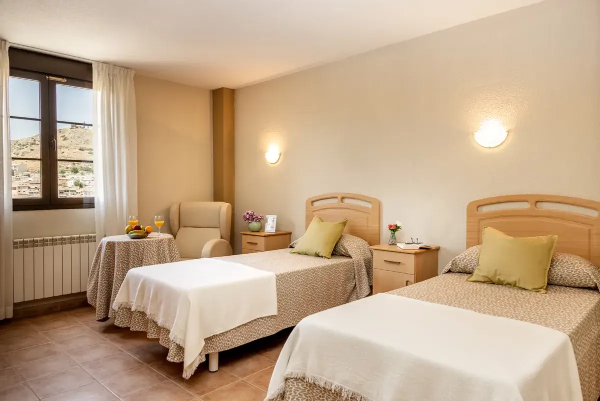 Las habitaciones, tanto individuales como dobles, cuentan con baño propio adaptado, camas articuladas, sistemas de aviso asistencial, climatización y mobiliario funcional. El diseño está pensado para favorecer la autonomía al máximo y permitir que las personas puedan desplazarse con comodidad, incluso quienes utilizan ayudas técnicas o sillas de ruedas. Además, existe la posibilidad de personalizar las estancias con objetos personales, fotografías y enseres que aportan identidad y confort emocional.
